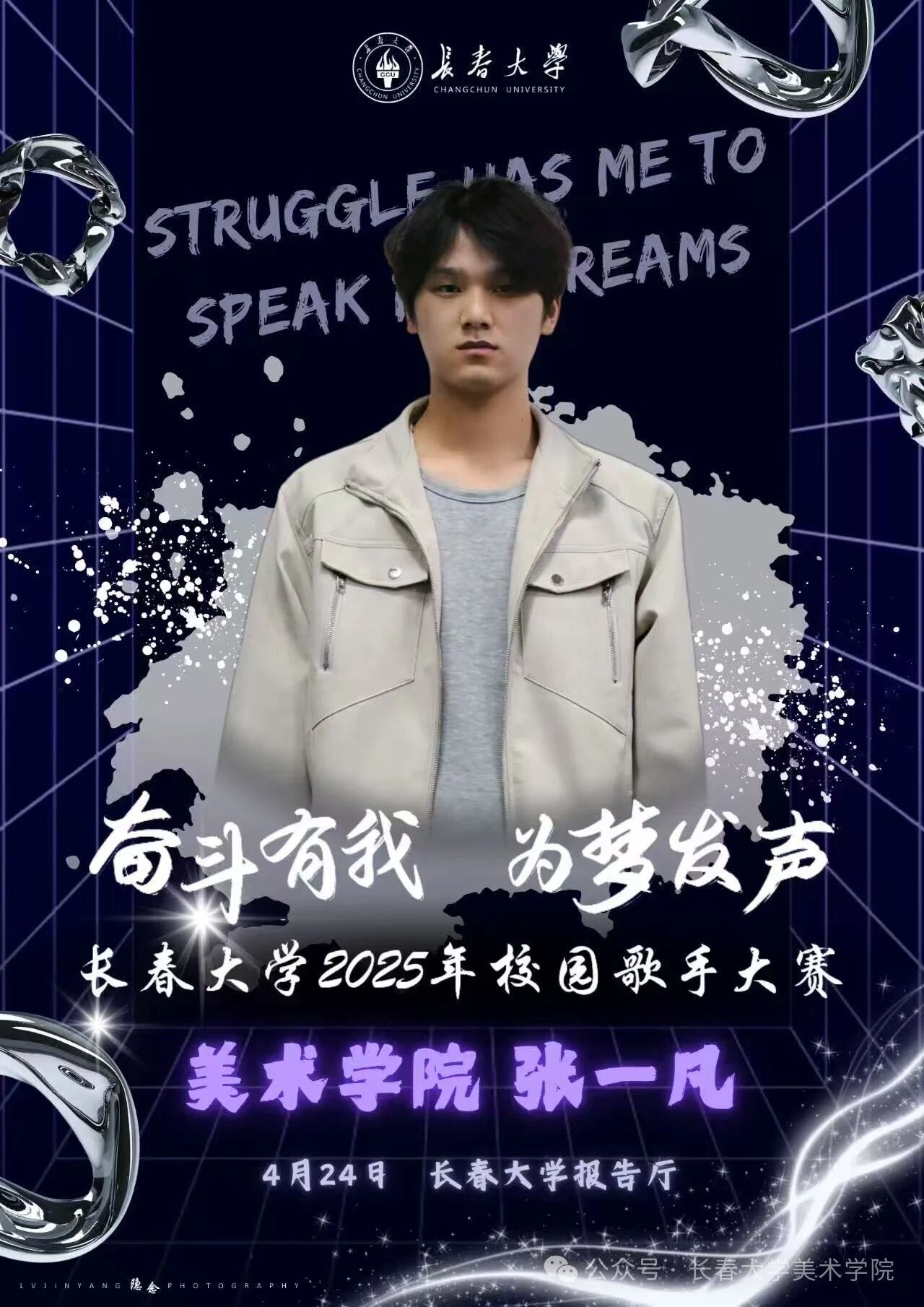 为深入学习贯彻党的二十届三中全会精神,推进第二课堂与第一课堂深度融合,弘扬五四精神,展现新时代青年风貌,营造积极的校园文化氛围。长春大学于4月24日举办2025年“奋斗有我 为梦发声”校园歌手大赛。在此次大赛中,美术学院荣获一等奖。