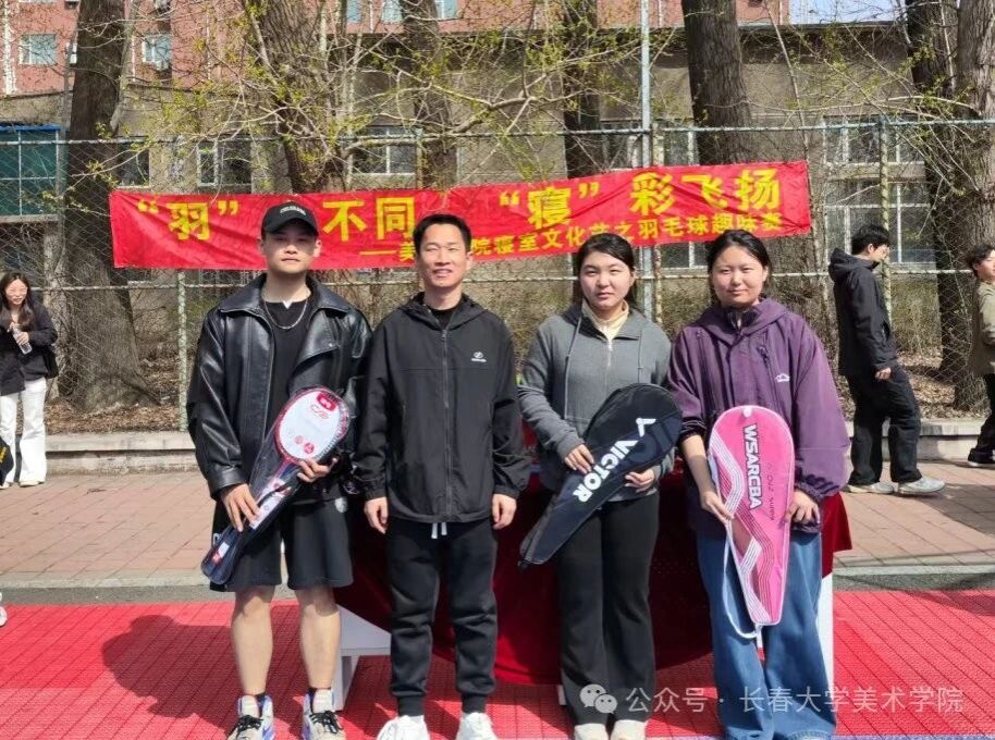 美术学院积极响应长春大学 2025 年“优秀寝室建设季”专项活动,结合自身特色,于4月23日开展了“羽”众不同,“寝”彩飞扬—寝室文化节之羽毛球趣味赛,赛前充分调动同学们的参与热情,通过这场充满活力的赛事,为寝室文化建设添砖加瓦,助力学生在体育竞技中增强团队协作能力,培养良好的生活习惯。此次活动邀请到学院党委副书记张臣明和学办全体老师参加。