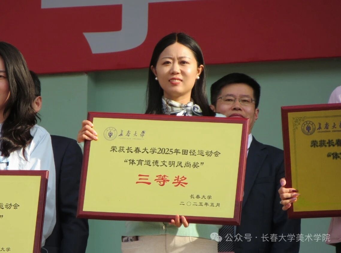本届田径运动会在掌声中顺利落幕,美术学院荣获长春大学2025年田径运动会“体育道德文明风尚奖”三等奖、长春大学“冠军杯”女子足球赛第二名。未来,美术学院会继续努力,发扬拼搏竞技精神的旗帜和“知行合一,诚信至善”的校训,再接再厉,一起向更高、更快、更强的目标前行。