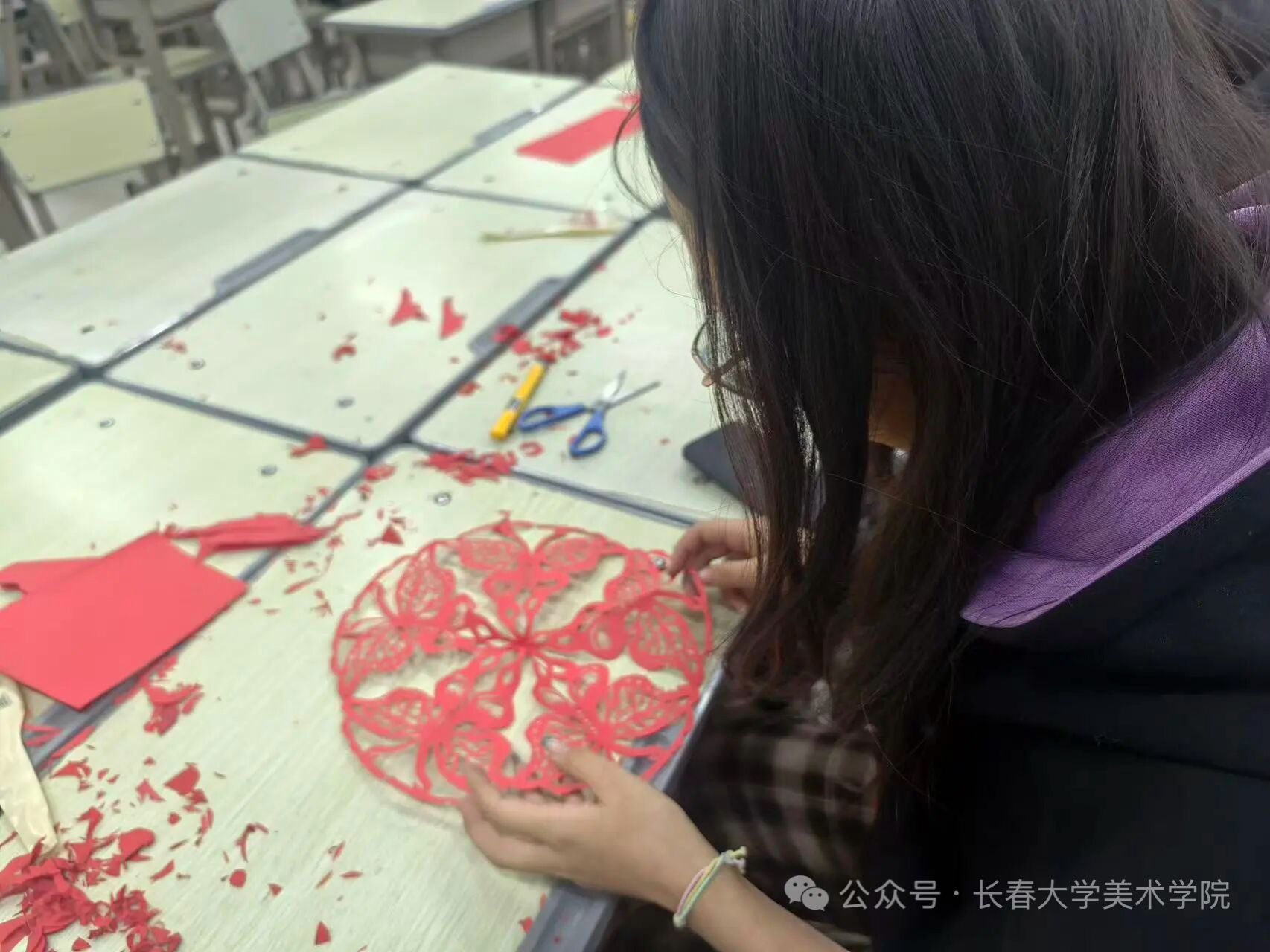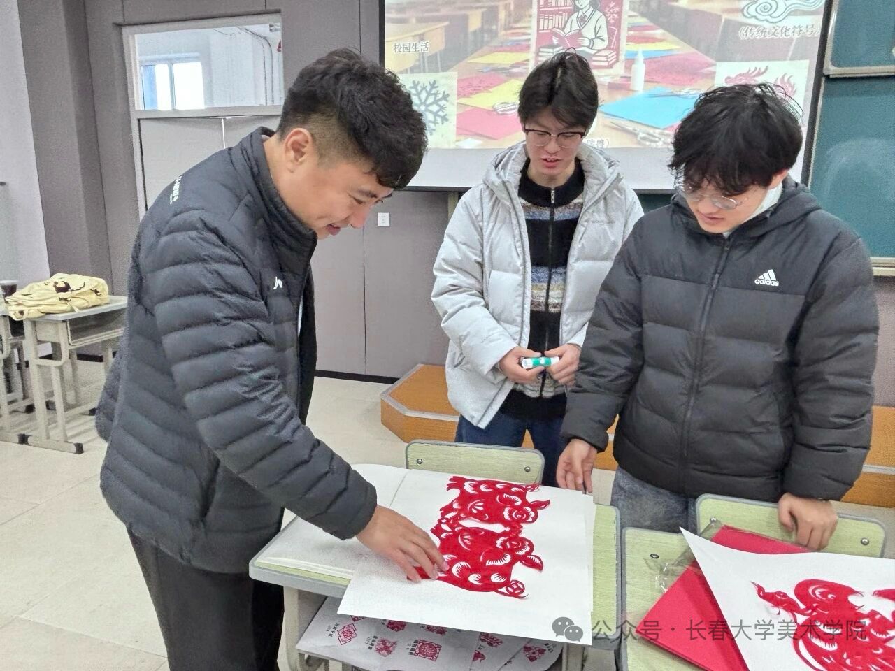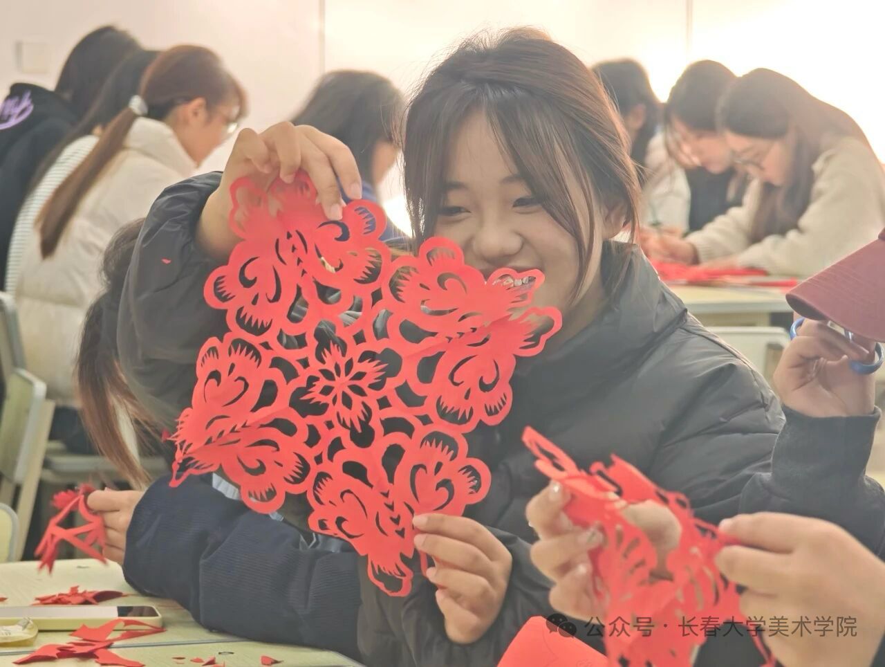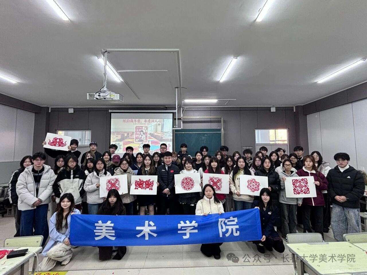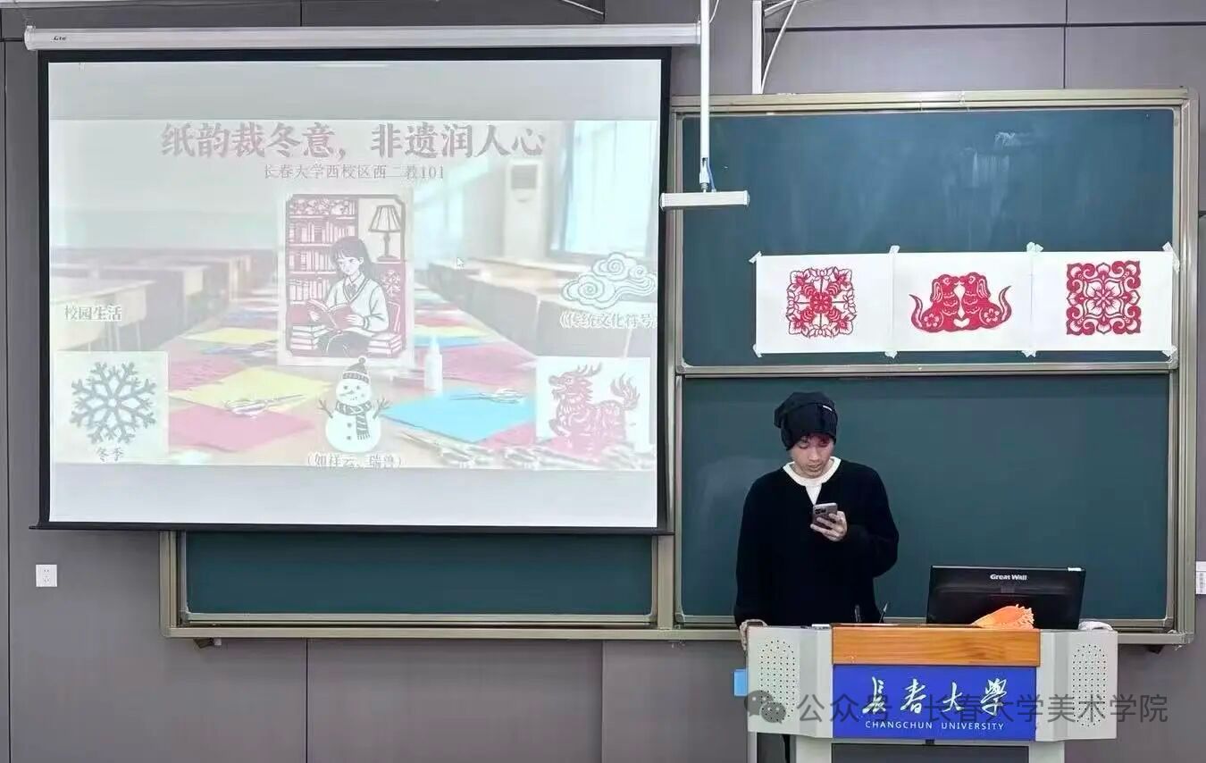2025年11月10日长春大学美术学院依托学生社团,结合专业特色开展“一院一品”活动品牌,为探索第二课堂深度融合,拓宽学生对美的理解和践行,在睿思楼101举行了一场以“纸韵裁冬意,非遗润人心”为主题的剪纸文化盛宴,让传统技艺在青春校园里焕发新生,让冬日的校园满溢着文化的暖意与创造的喜悦。
