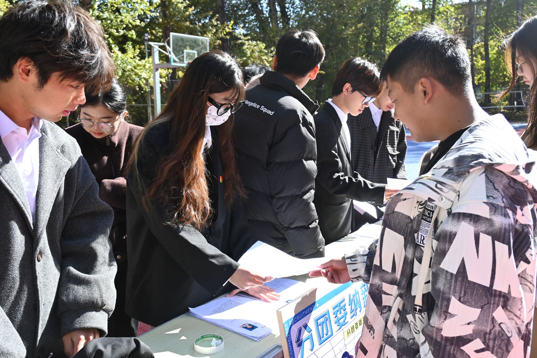 纳新活动于10月16日,在篮球场进行,在纳新现场,各团学组织的海报宣传以及独特新颖的口号,无不彰显着青春与活力。各组织,有条不紊的组织新生交纳材料,各组织成员,细心的为前来,报名的新生同学们答疑解惑。